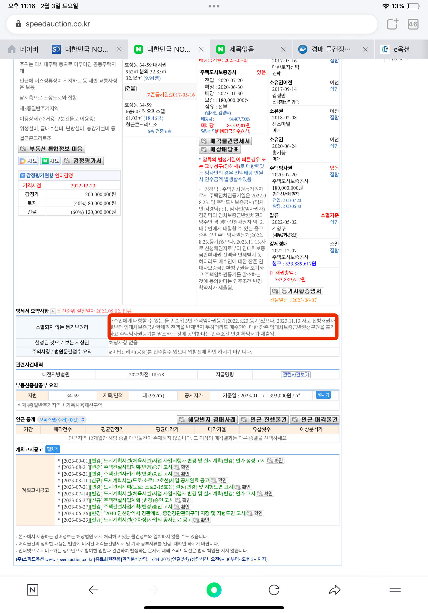 - 임차인 : 주택보증공사로서 소멸기준 압류 보다 전입일이 빨라 대항력이 있으나 대항력 포기한 물건임.